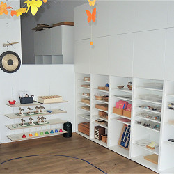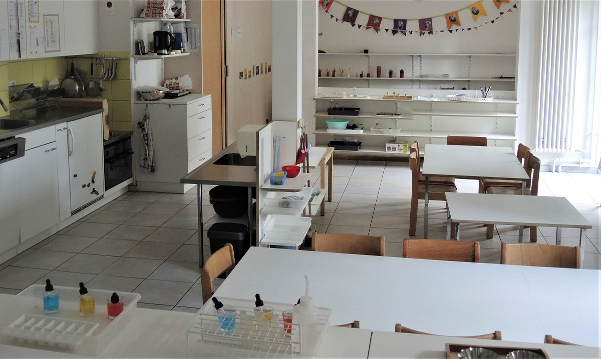 Auf der Riesen-Gruppe werden Kinder zwischen 3-6 Jahren betreut. Die Kinder können den privaten Montessori Kindergarten besuchen.